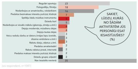 Personīgas līdzdalības sekmēšana ir viens no efektīviem veidiem auditorijas palielināšanai kultūrā kopumā. Pētījuma dati gan neļauj viennozīmīgi secināt, vai aktīvāks patēriņš determinē aktīvāku līdzdalību vai otrādi, tomēr pozitīva korelācija starp patēriņu un līdzdalību ļauj apgalvot, ka iedzīvotāju kultūras aktivitātes sekmēšanai kopumā ir būtiski aktivizēt kā patēriņu, tā arī līdzdalību un personīgu iesaisti. Tie iedzīvotāji, kuri paši personīgi ir iesaistīti kādās kultūras aktivitātēs (dzied, dejo, piedalās amatierteātrī, nodarbojas ar amatniecību vai tml.), pēdējā gada laikā bija apmeklējuši vidēji 10,7 dažādus kultūras pasākumus, kamēr tie, kuri paši personīgi nav iesaistīti nekādās aktivitātēs, tikai 5,7 kultūras pasākumus.